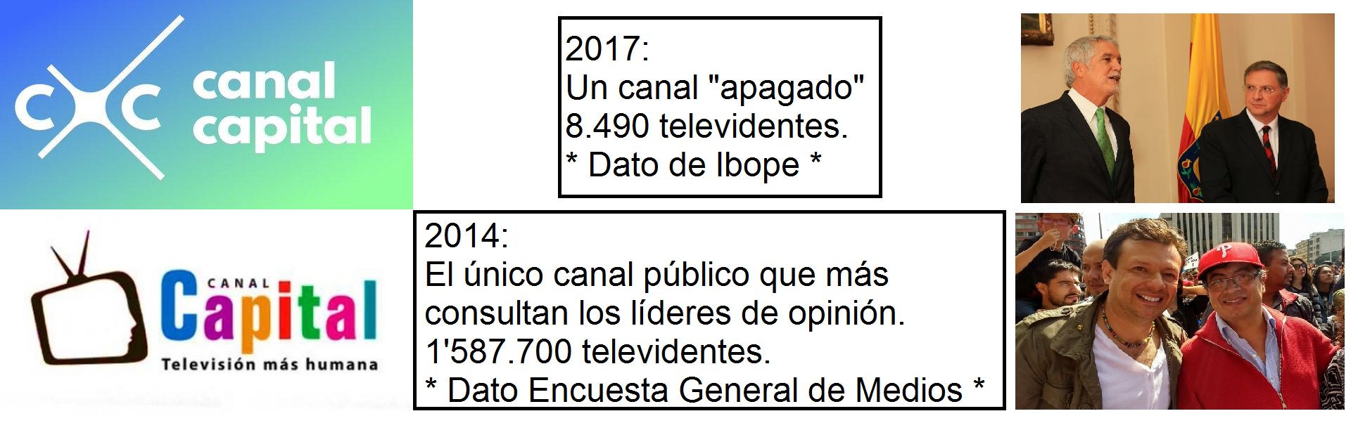 La administración de Peñalosa trazó el fracaso del canal como medio público. Al lado derecho, vemos el logo del canal de la administración de Petro. Imagen tomada de Las2Orillas.